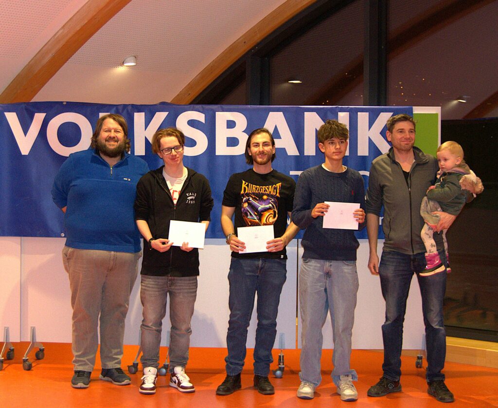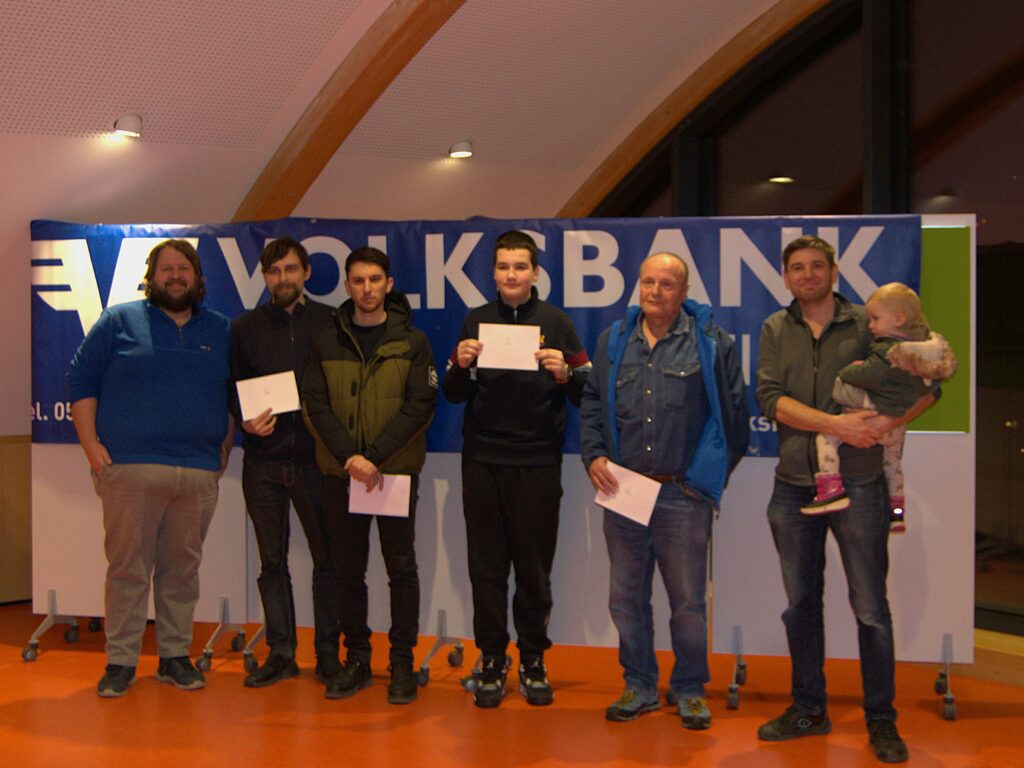 (Auf dem Foto: Von links: Stefan Ranner, 4. Simon Ruhnke, 3. Aleksandar Spasov, 1. Lukas Jurisic, 2. Strasser Josef, Obmann Georg Fuchs)