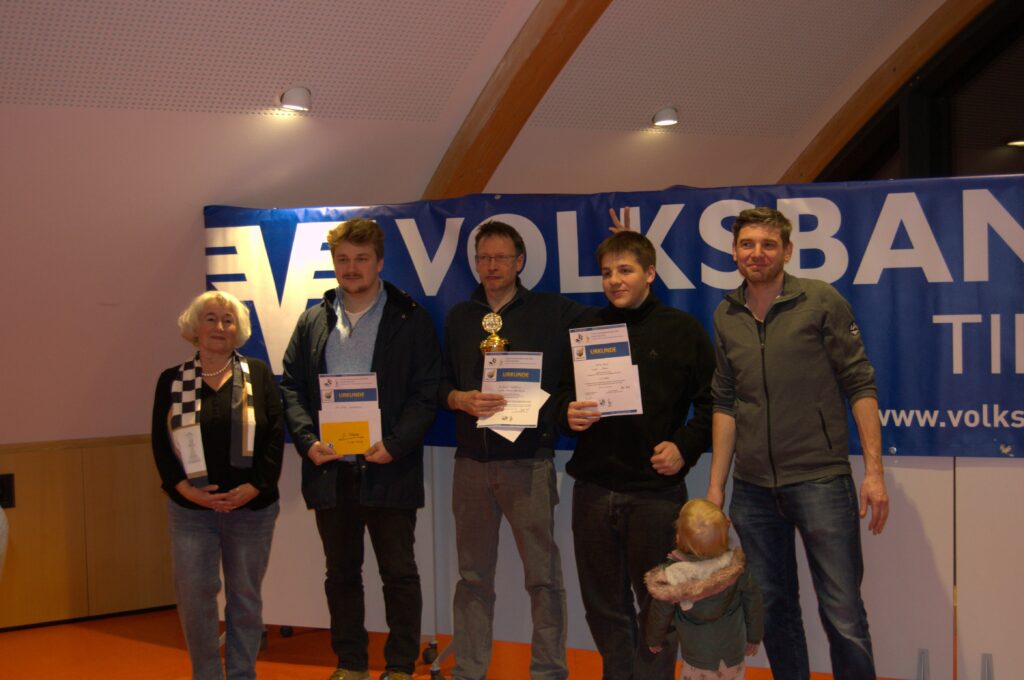 In dieser Gruppe schaffte der „Altmeister“ FM Dieter Pilz einen souveränen Sieg vor Marco Schranzhofer (Pradl) und Armin Haselsberger (Jugendspieler des SK Kufstein) sowie weiteren neun Teilnehmern.