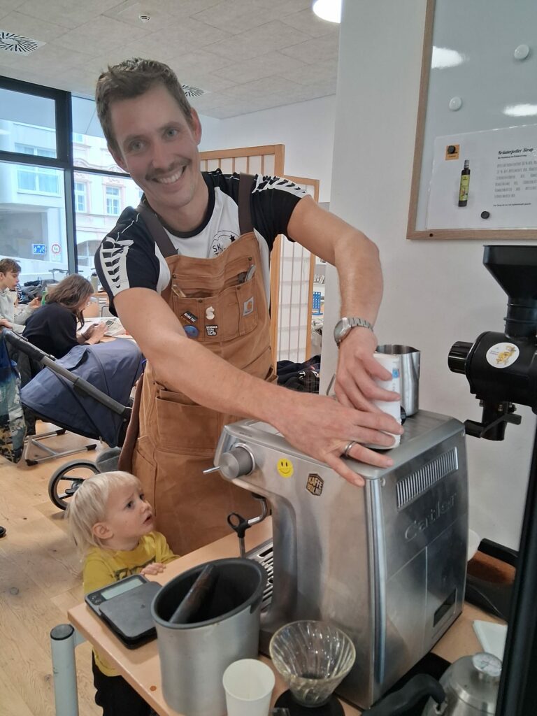 Der Barista hat den Erwachsenen einen vorzüglichen Kaffee zubereitet