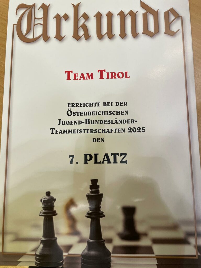 Trotz des fehlenden Brettes zeigte die Mannschaft eine geschlossene und engagierte Vorstellung. Angesichts der Umstände ist der 7. Platz ein respektables Ergebnis und beweist einmal mehr, dass Tirols Nachwuchs im österreichischen Vergleich weiterhin konkurrenzfähig bleibt.